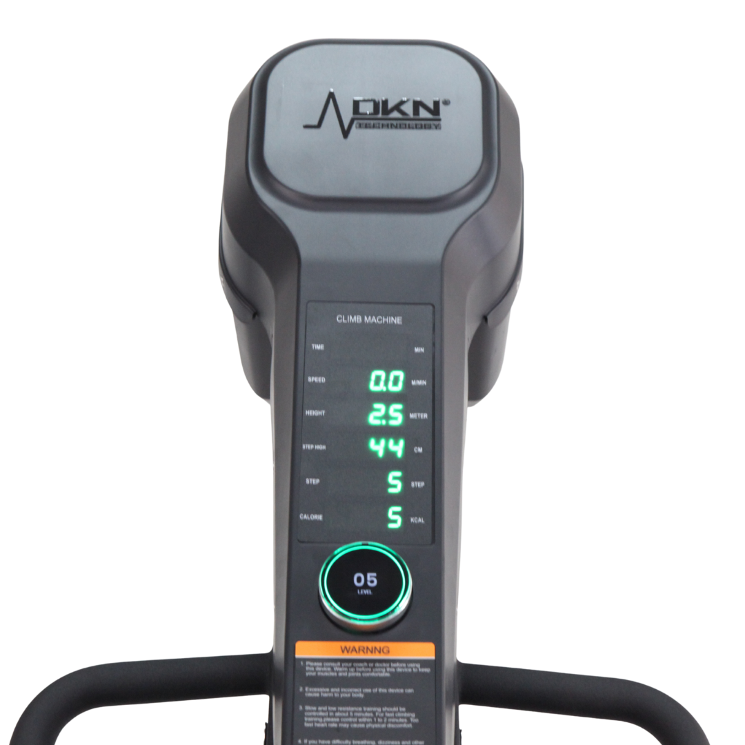 De Climb Trainer biedt een meeslepende en boeiende ervaring en toont essentiële gegevens zoals tijd, snelheid, hoogte, stappen, verbrande calorieën en weerstandsniveaus op een slanke en gemakkelijk te ontcijferen monitor. Houd je voortgang in realtime bij, volg je prestaties en streef naar nieuwe mijlpalen terwijl je virtuele toppen beklimt en je fitnessambities verwezenlijkt.
